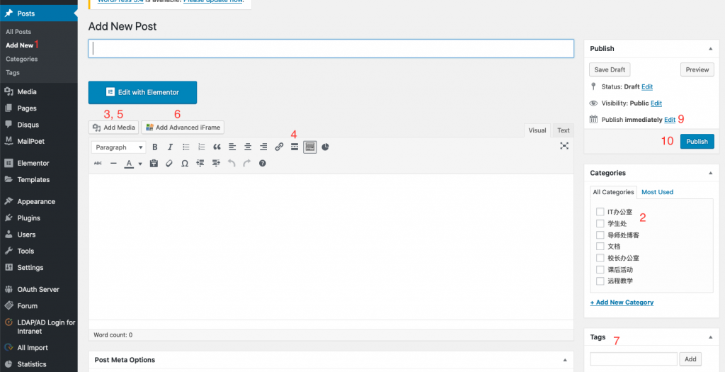 - Press Publish button when finished, or Save Draft and then close window to work on it later