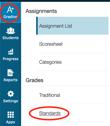 2. Go to Grading > Grades> Standards