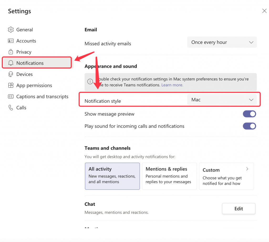 A recent change for the Teams notification style causes Teams to miss red dot notifications when a new message is incoming.