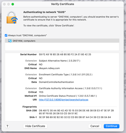 GUIS NETWORK ACCESS Certificate Fingerprints