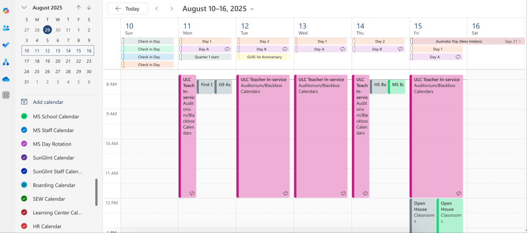 Starting from the 25-26 academic year, we will be using new shared calendars throughout the school. The following is an introduction to the relevant calendars.