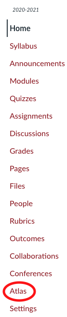 Atlas is now integrated with Canvas. You will see it in each Canvas Course on the left-sidebar, as in the image below.