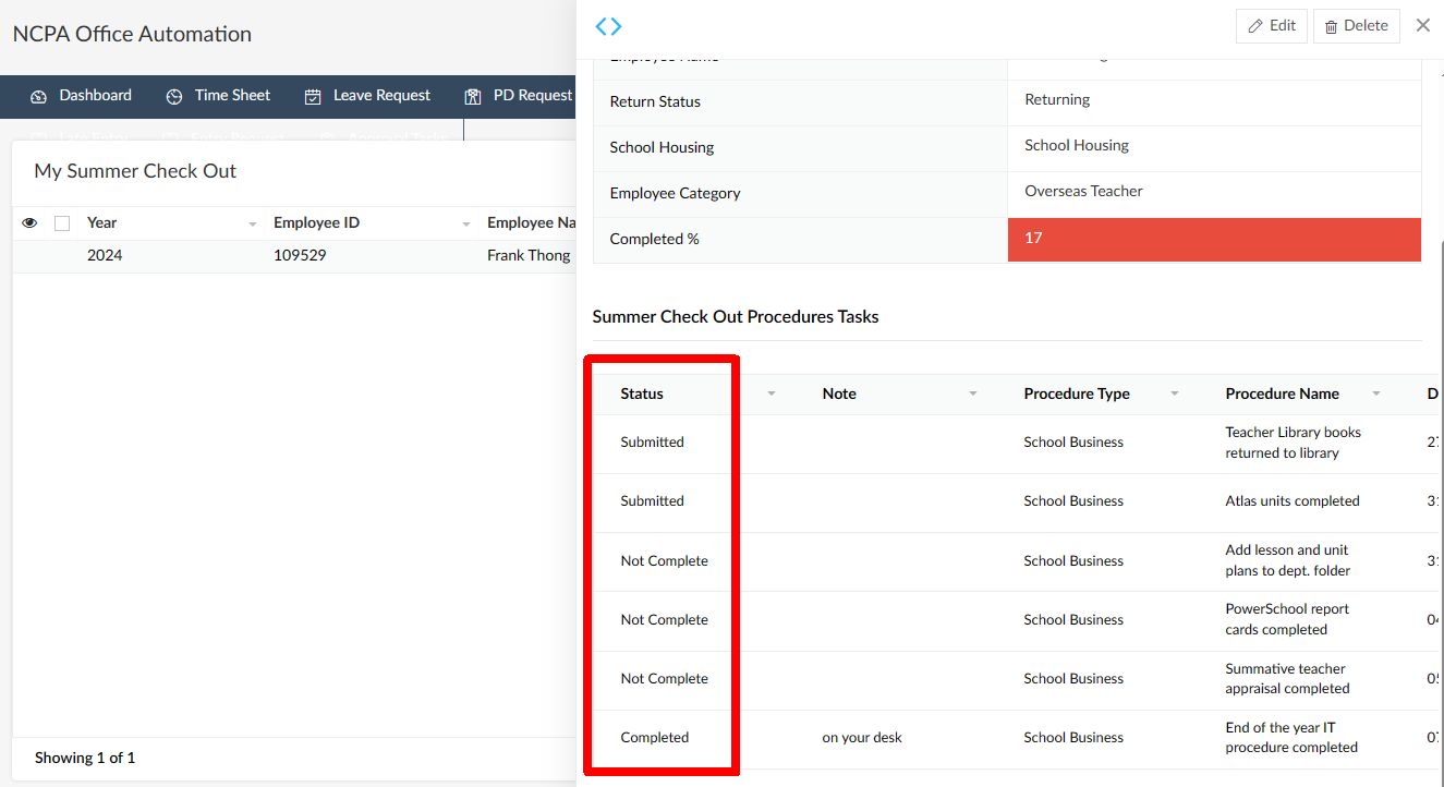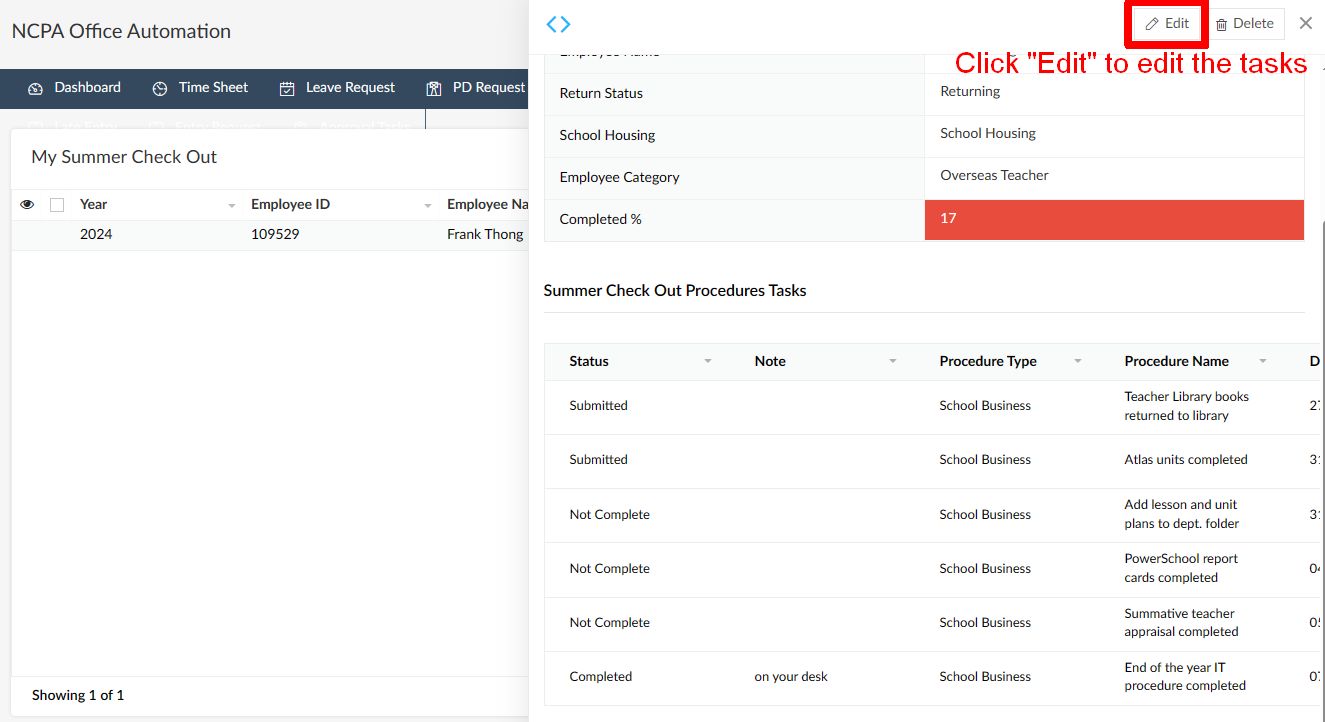 From the Staff Portal, you can find a link to your Summer Checkout Form under HR & Finance.