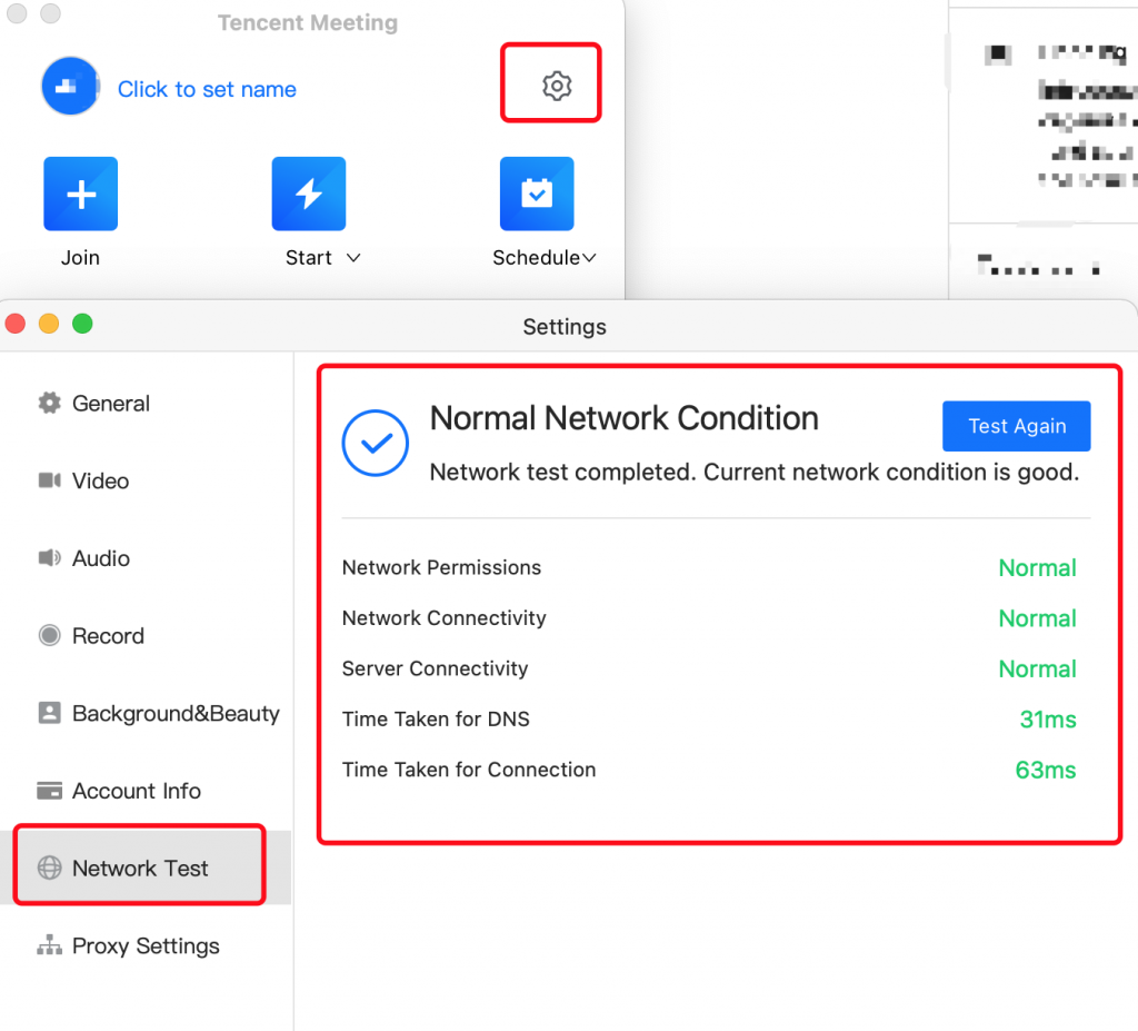 Click Start to host a test meeting点击开始打开一个测试会议