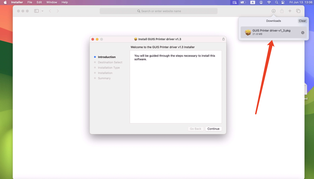 - Please navigate to https://go.ncpachina.org/guis-printer-setup-mac (🔒On-campus network only) via your favorite browser, click the download button, and then double-click the file called “GUIS Printer driver-v[*.*.*.*].dmg” to mount and run the pkg installer.