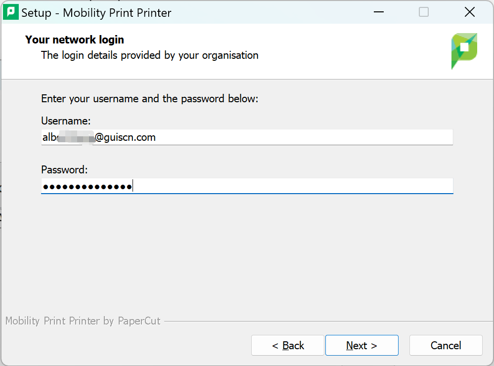 - During the installation, please enter your full email address (GUIS: ***@guiscn.com) and email password.