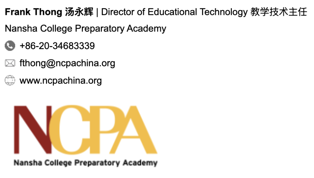 ​1.Using a standardized e-mail signature increases the professionalism of communications with internal and external parties. The official NCPA signature format is as below.