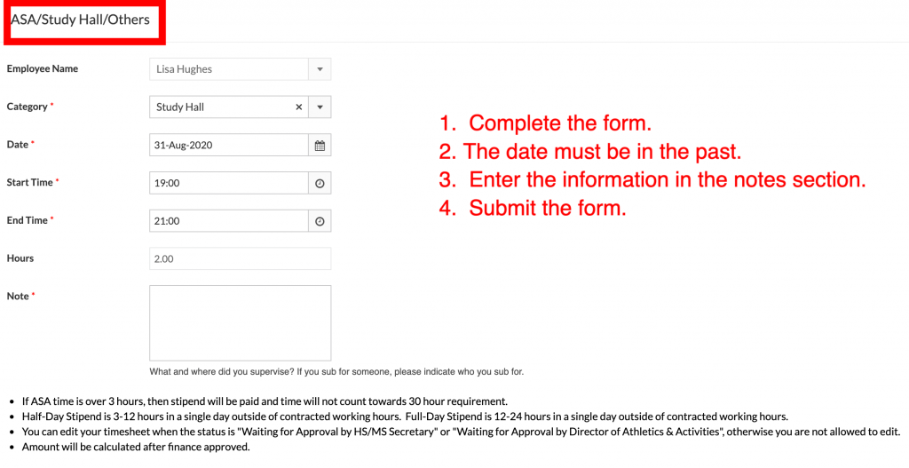 How do I submit timesheets for ASA and study hall?