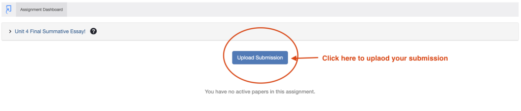 When students are ready to submit their document, they will click the button at the bottom of the assignment page. It will say “Load + name of your assignment + in a new window” (see an example below). In the new window, they will be prompted to upload their document.