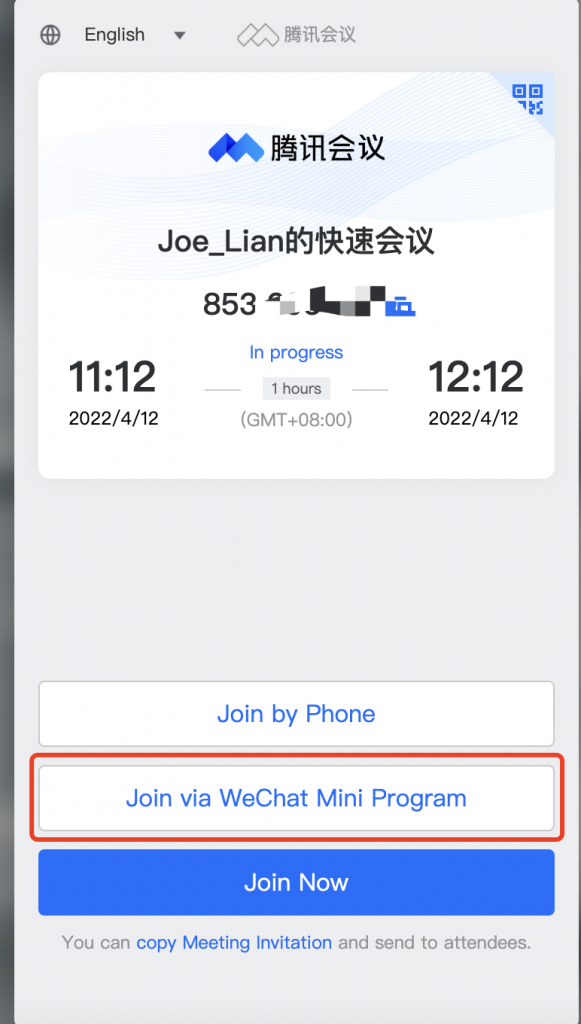 You can join a meeting with WeChat mini program if you do not have the Tencent Meeting app on your phone.