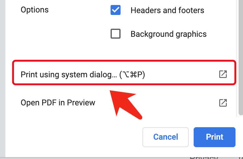 Click “Print using system dialog” #