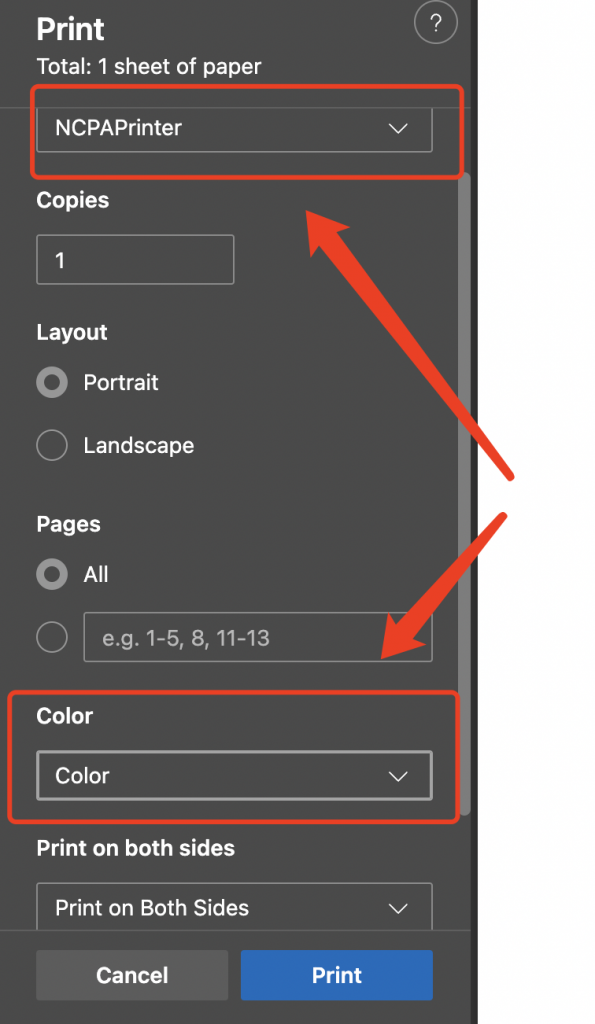 If you are trying to do color print using Chrome / Edge, don’t use the chrome / Edge color setting.