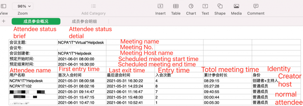 You can get the total meeting, entry time, first, last time for every single attendee using Tencent Meeting.