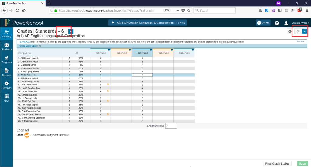 In semester 1, make sure you are viewing “S1” and not “Y1” when submitting grades and comments.