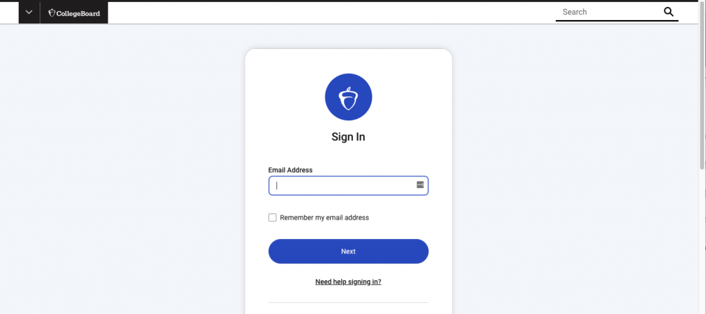 Go to the College Board homepage and click Sign In.