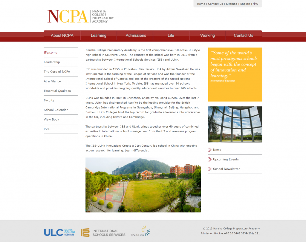 This is the first NCPA homepage with a complete record, mainly using static content. Use bilingual content.